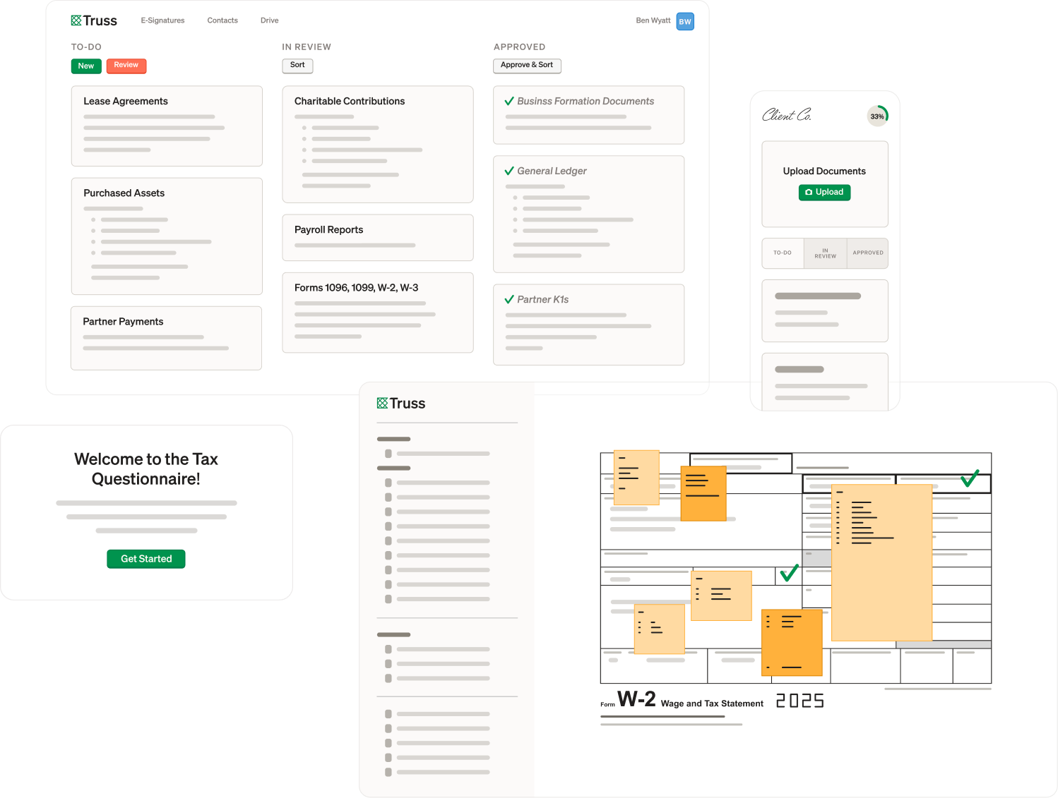 Ask only what’s needed via prior-year data and build client-specific to-dos at scale.